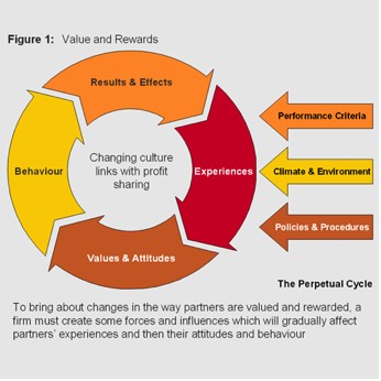 …and a consideration of what the firm expects of its partners in terms of their leadership roles and individual performance. In addition, the objectives of partners (and therefore their resulting targets) must be deeply rooted in a firm’s values and culture. There is therefore a process of planned evolution in which the roles of partners can be developed at the same time as progressing the linking of partner targets to their ultimate compensation or profit share. This evolution should be based on five key underlying principles: