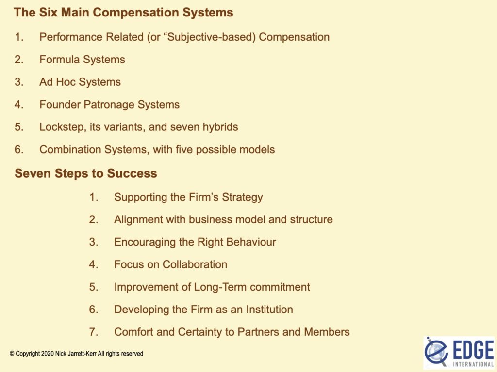 There is no single system that has suited every professional service firm in the past and – as firms move towards greater degrees of corporate structures – there are likely to be many systems that attempt to incorporate or hybridise the best of the “Big Six” whilst attempting to avoid the drawbacks.
