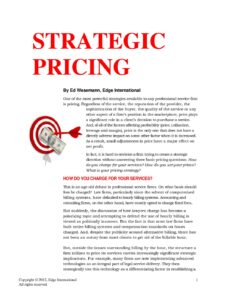 In fact, it is hard to envision a firm trying to create a strategic direction without answering three basic pricing questions: How do you charge for your services? How do you set your prices? What is your pricing strategy?