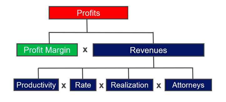 In the familiar profitability model (see figure below), realization has taken on a pivotal role. Realization in this context is the ability to actually bill and collect the value of billable time (billable hours x rate).