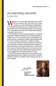 You will find an electronic copy of this and previous editions of the Edge International Review on our website. You are welcome to download and share full editions or individual articles among the members of your firm. Enjoy!