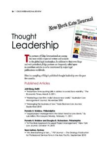 The partners of Edge International are among the most widely respected writers and analysts in the global legal marketplace. In addition to their own blogs and web periodicals, Edge partners are frequently called upon to contribute articles to or be interviewed by major legal publications worldwide.
