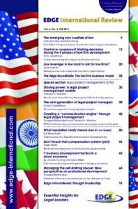 The Fall 2011 issue of the Edge International Review delves into the evolving legal landscape, emphasizing the rise of alternative legal hubs, low leverage challenges, and legal project management (LPM) advancements. Key articles cover emerging centers of legal work in unconventional locations, strategies for enhancing firm decision-making, and the adoption of LPM as a tool for boosting efficiency and client satisfaction.