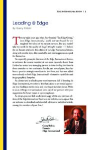 Twenty-eight years ago, when I co-founded “The Edge Group,” (now Edge International), I could not have hoped for nor imagined the talent of its current partners. But you needn’t take my word for the quality of Edge’s thought leaders — I believe the six feature articles in this edition of our Edge International Review, along with smaller items like roundtables and media appearances, speak for themselves.