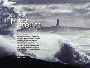An unprecedented convergence of external and internal forces is generating gale-force winds of change in the legal marketplace, testing the skills and courage of law firm leaders to their fullest. How can you drive profits in these economic conditions without abandoning long-term strategies or sacrificing collegiality? Here is a guide for navigating the stormiest seas on record.